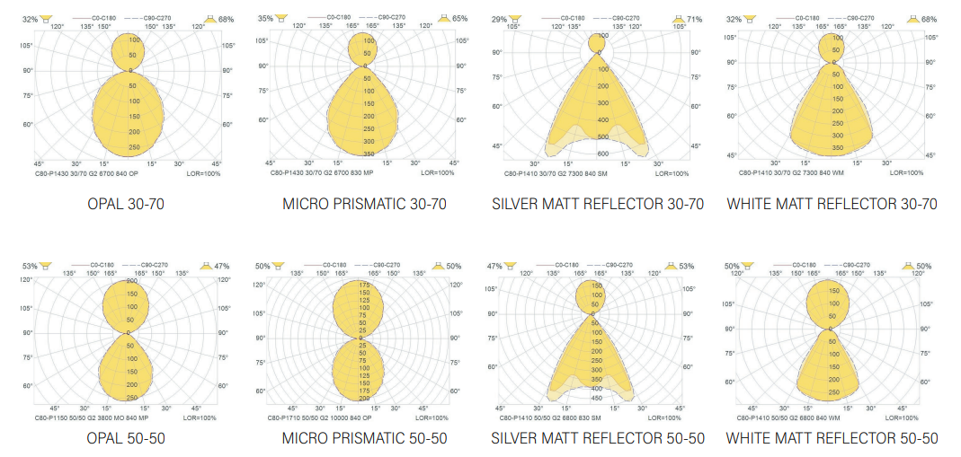 מערכת אופטית מגוון פיזורים פוטומטריים לבחירה.