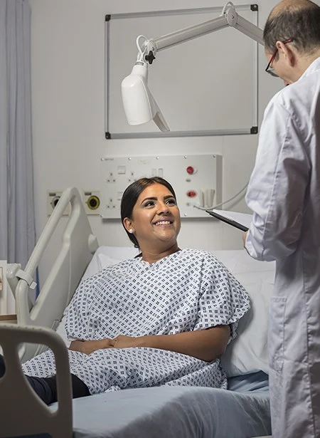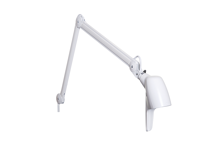 גוף תאורה עם זרוע מתכוונת מבוסס טכנולוגיית LED להרכבה על שולחן, קיר או רצפה. קל לתחזוקה וניקיון. מתאים לראש מיטת חולה עם ידית ארגונומית להפעלה קלה ובטוחה עבור מטופלים או צוות רפואי.