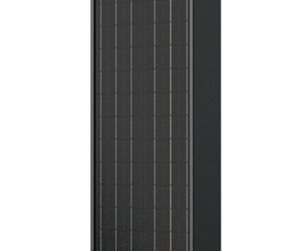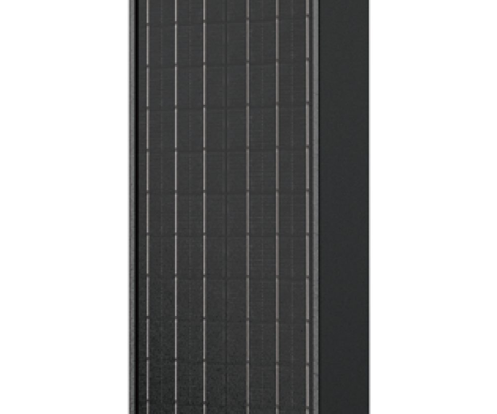 פאנל סולארי מונוקריסטל עם בסיס שחור וכיסוי זכוכית, יעילות כללית 22%.