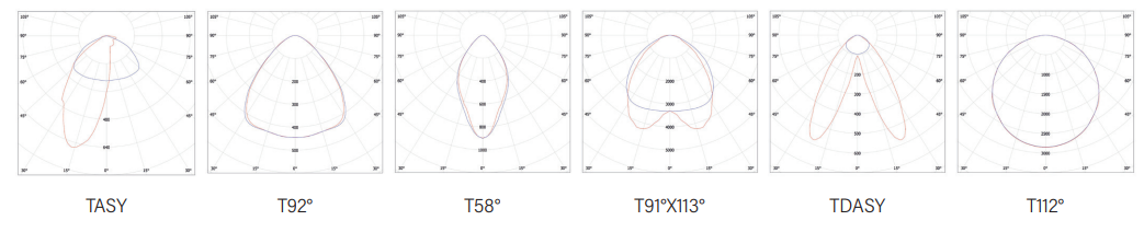 מערכת אופטית מגוון עקומות פוטומטריות מתוכננות ליעילות מרבית של פיזור האור. למידע על אופטיקות נוספות יש לפנות למחלקת הנדסה.