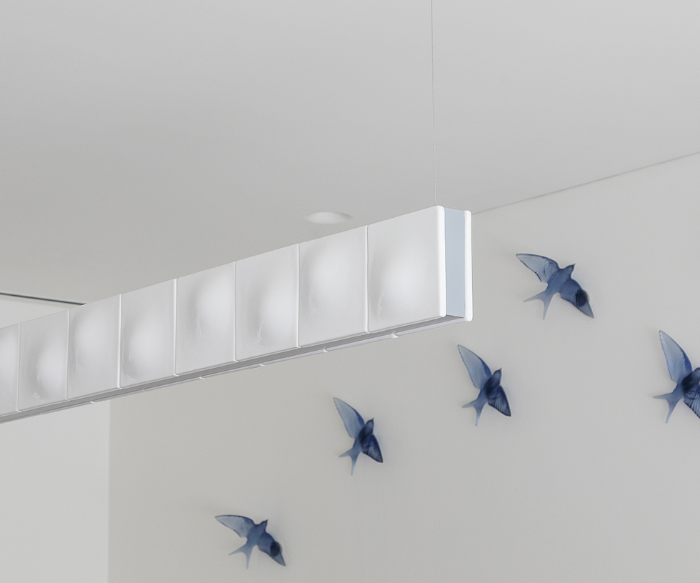 גוף תאורה דקורטיבי תלוי מבוסס טכנולוגיית LED לתאורה ישירה. מגע באורכים שונים. כיסוי הגוף החיצוני מצופה אריח מצויר ביד. מתאים להארת חללי אירוח, הדגשת פינות בלובאים, אולמות כניסה, חדרי המתנה ועוד.