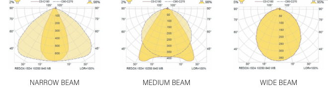 מערכת אופטית פיזור פוטומטרי לבחירה Narrow beam (NB) / Medium beam (MB) / Wide beam (WB). למידע על אופטיקות נוספות יש לפנות למחלקת הנדסה.