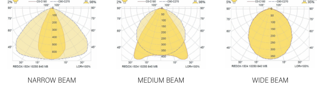 מערכת אופטית פיזור פוטומטרי לבחירה Narrow beam (NB) / Medium beam (MB) / Wide beam (WB). למידע על אופטיקות נוספות יש לפנות למחלקת הנדסה.
